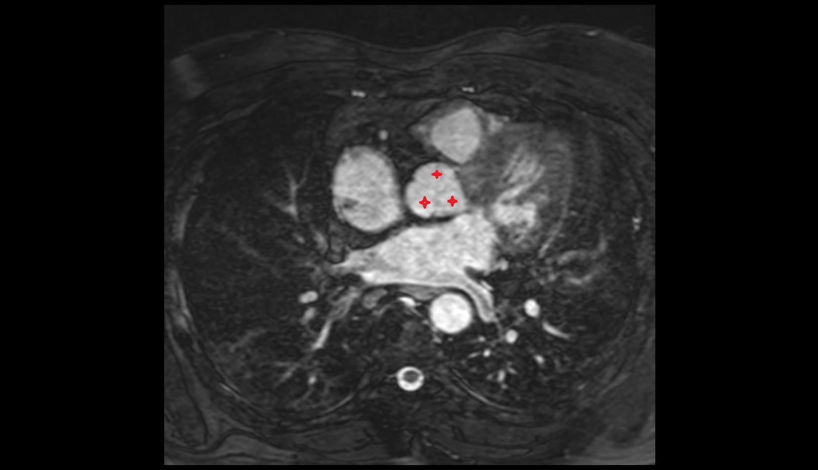 Aortic sinuses appear as low signal vascular lumens (flow voids)