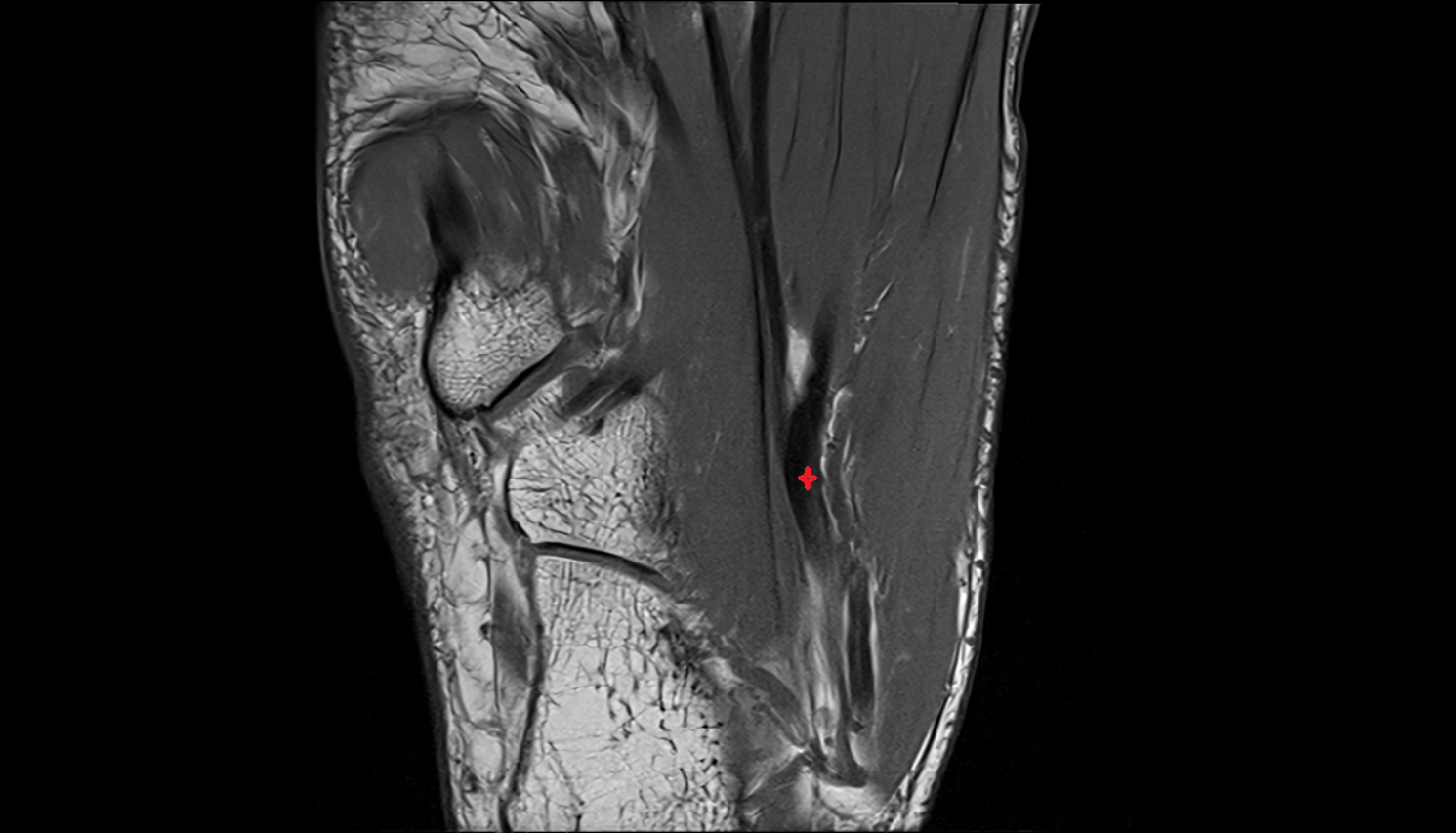 Normal FDL tendon: low signal intensity (dark band)