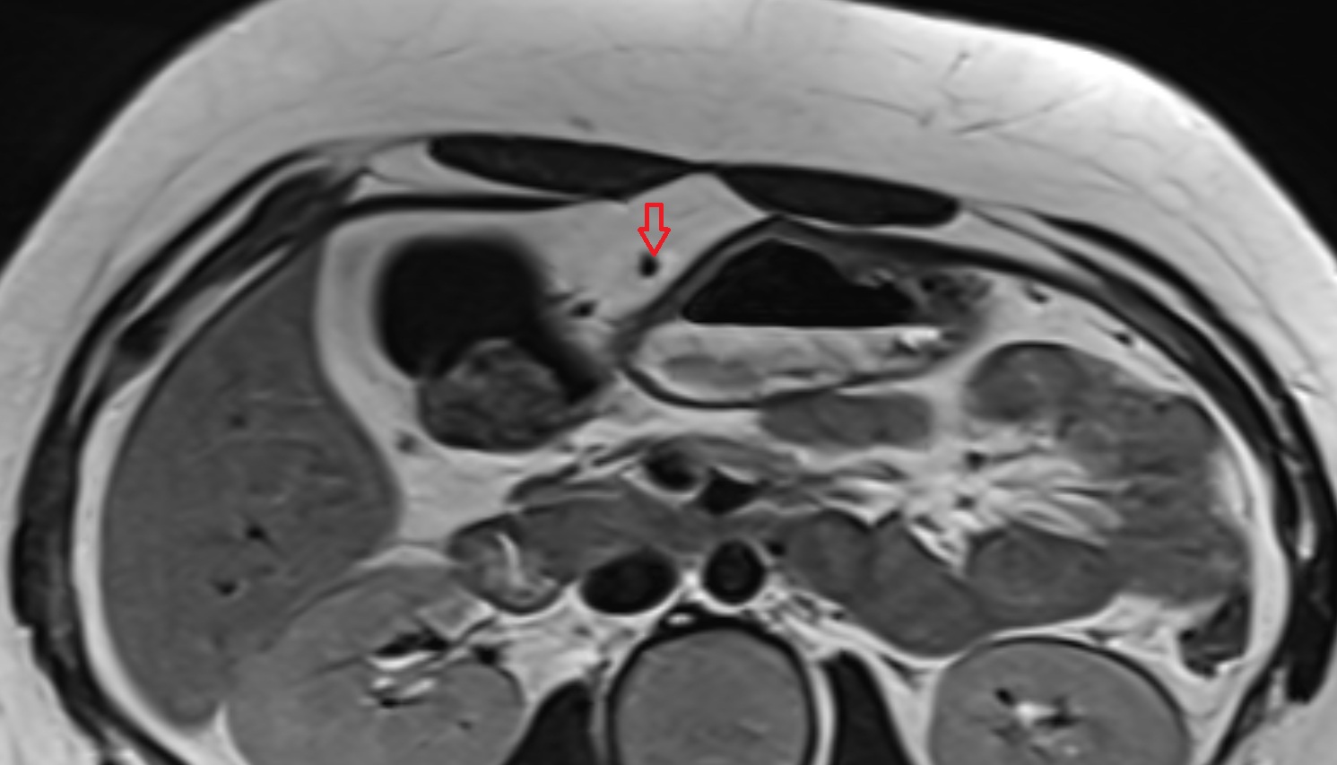 Fat planes around ligamentum teres appear hyperintense
