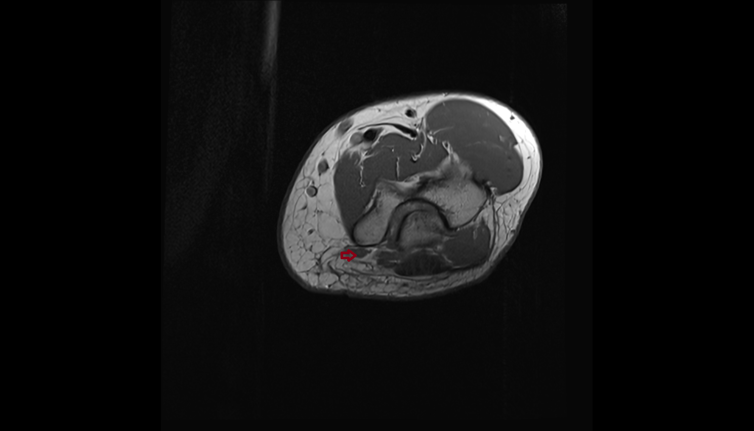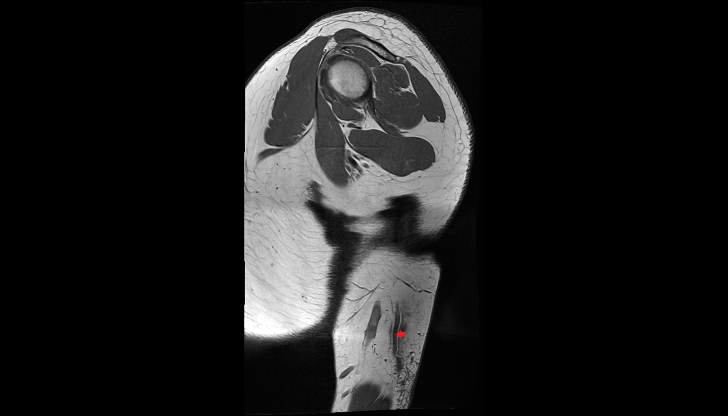 Adjacent muscle atrophy: Fatty replacement with bright T1 signal in chronic denervation.
